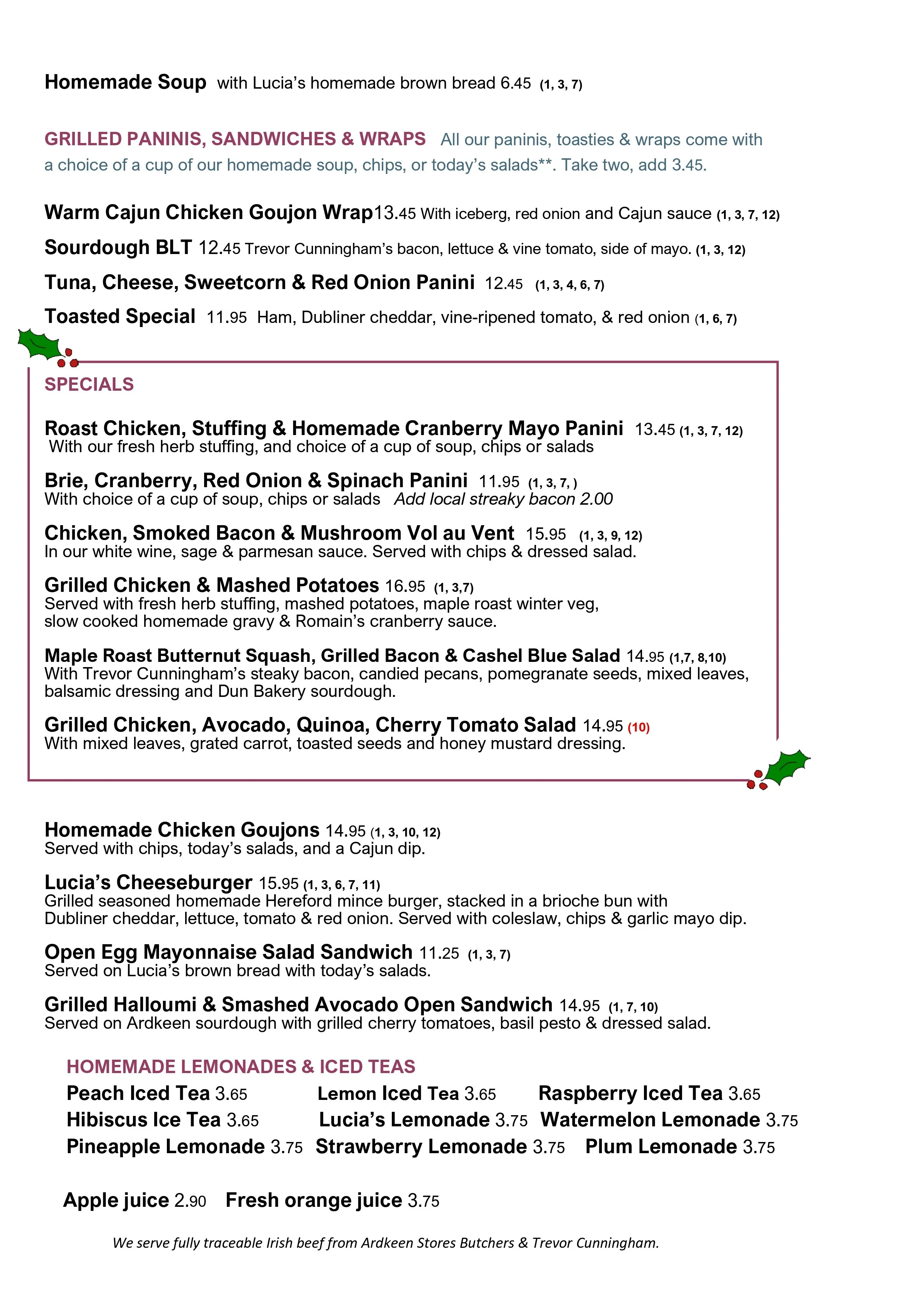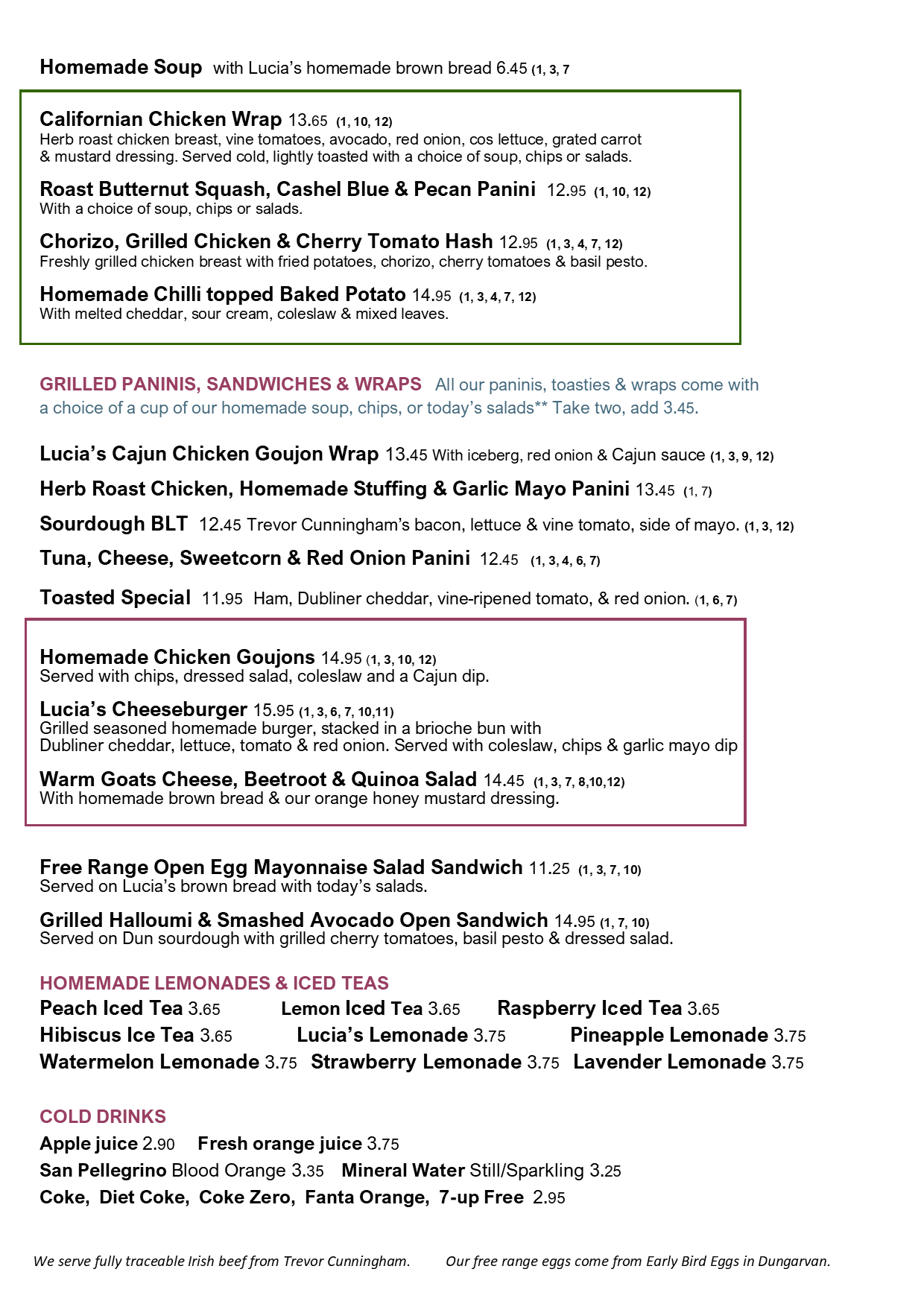 Cafe Lucia Sample Lunch Menu